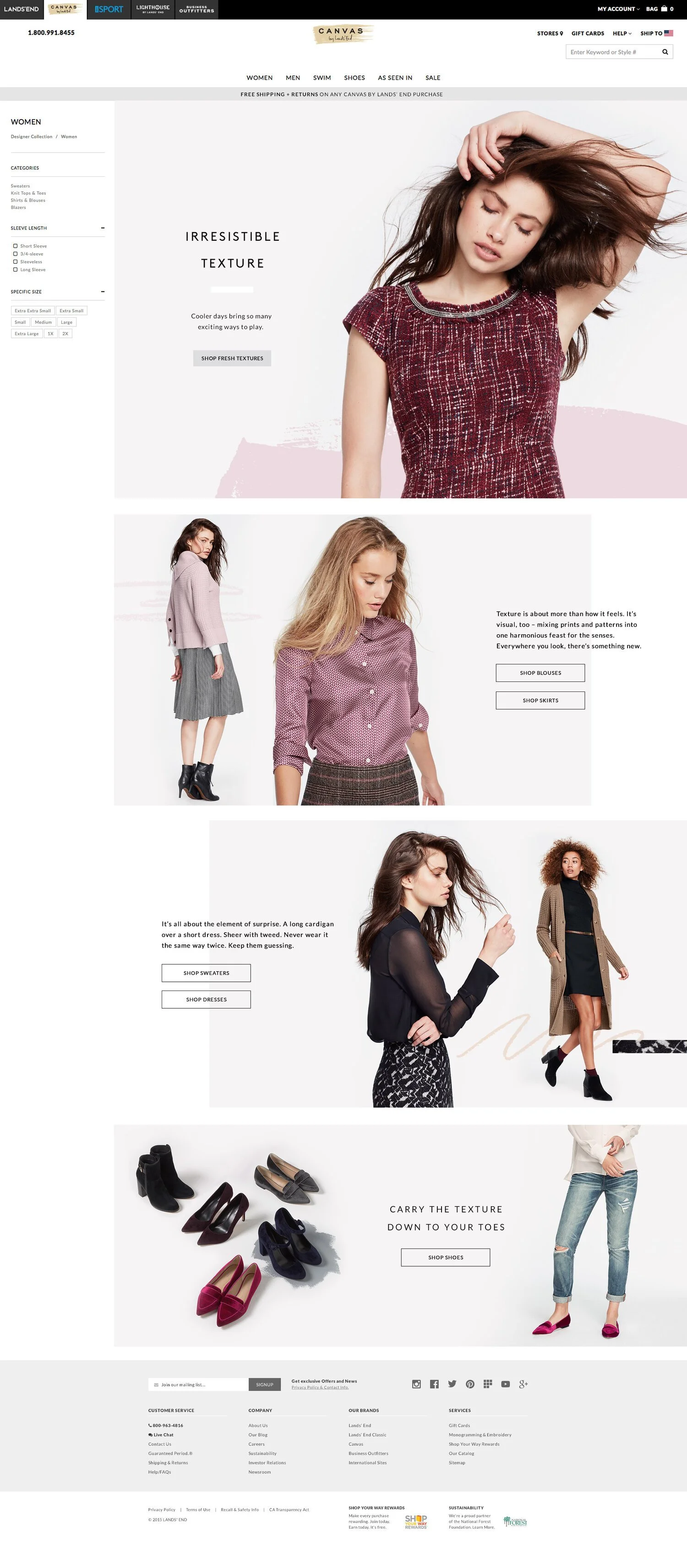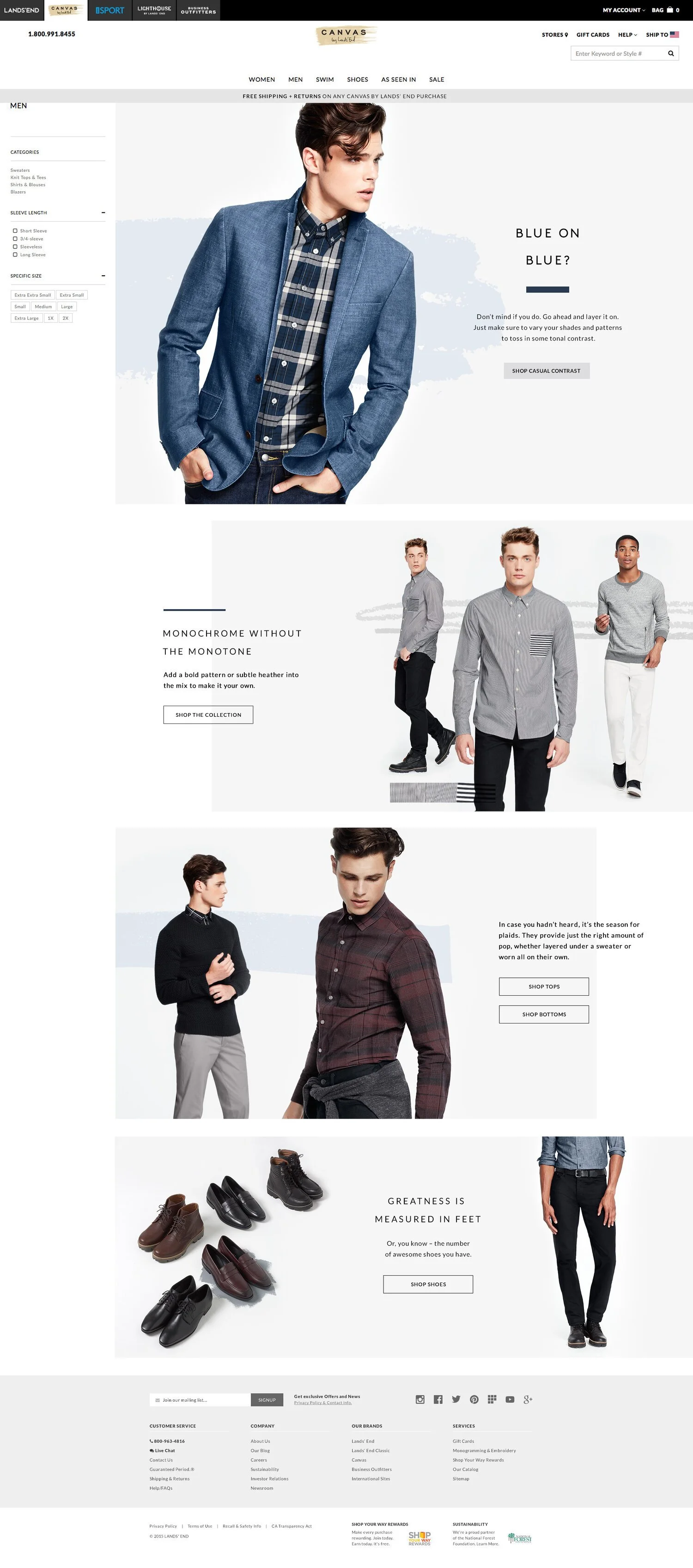 Seasonal tab pages designed for Lands’ End Canvas and Lands’ End Sport - two sub brands intended to attract a younger consumer looking for more fashion-forward pieces. Created hand lettering and illustration to pull together studio photography for Lands’ End Canvas. We kept a cleaner look for Lands’ End Sport calling out performance features on the product. Pages were optimized for a responsive environment on mobile.